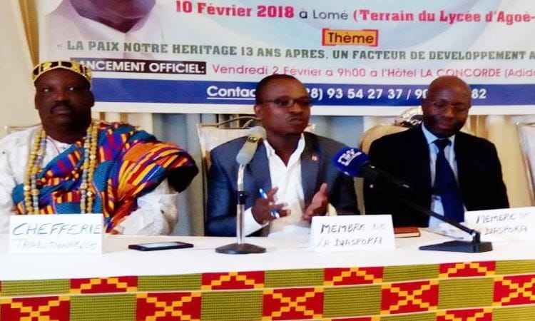 La diaspora togolaise aux USA, en Italie, en France, en Belgique, en Allemagne, au Sénégal et au Maroc est de retour  pour contribuer  à la promotion de la paix dans le pays d’une part  et rendre un hommage au feu Président Eyadéma Gnassingbé d’autre part. Réunie au sein du  Réseau Diaspora, Force de Développement du Togo, elle organise le 10 février prochain  la première édition « du tournoi du 5 février » et de « la coupe de la paix ». L’événement est placé sous le thème « la paix notre héritage 13 ans après, un facteur de développement à préserver ».